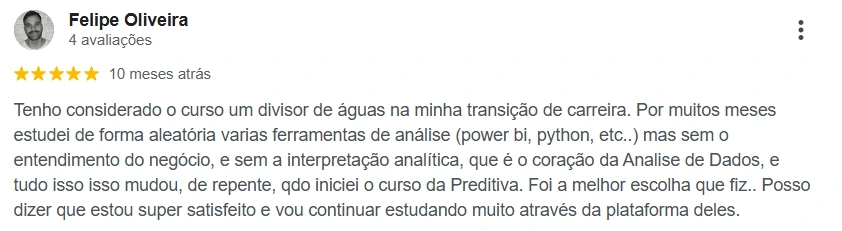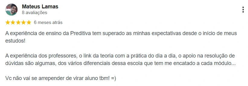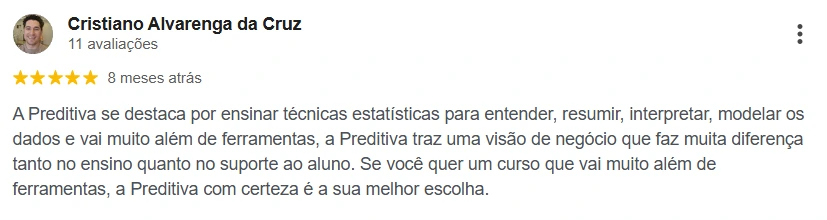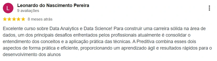 Além dos 7 dias obrigatórios pelo Código de Defesa do Consumidor, você ainda tem mais 8 dias adicionais para acessar o curso e conferir se é o que você procura. Caso você considere que o conteúdo não é para você, nós te reembolsaremos 100% do valor pago, sem questionamentos nem complicações. Tudo isso para reforçar o nosso compromisso com a sua realização profissional na área de dados.