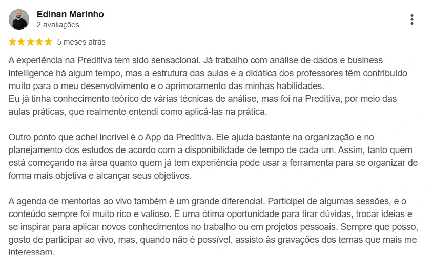 Na Black Preditiva 2025, você tem a chance de garantir a Formação Gerando Valor com Dados + a Formação Gerando Valor com Inteligência Artificial por um preço mega especial, de forma vitalícia (Isso mesmo, acesso liberado para sempre!). E, pensando em impulsionar ainda mais a sua jornada, liberamos bônus exclusivos que vão te ajudar a conquistar a sua vaga em dados e IA ainda mais cedo!
